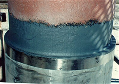 Junction of stainless steel liner on rudder stock