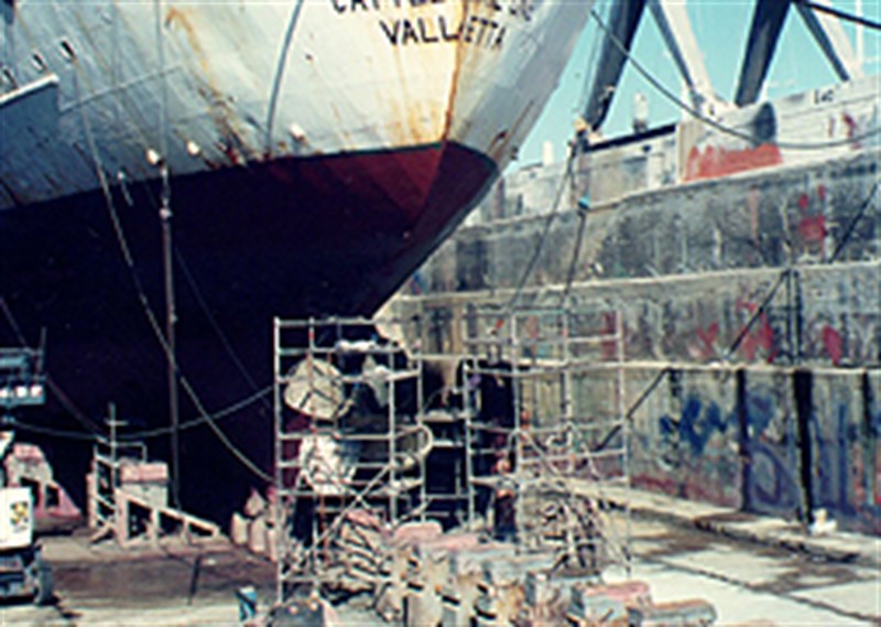 - Work underway on the vessel in dry-dock