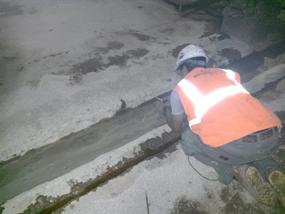 The application was carried out in accordance with Belzona Know-How System Leaflet FPA. Loose concrete was chipped away and the edges were ground. A wood former was used to rebuild the edges to the original width and height.