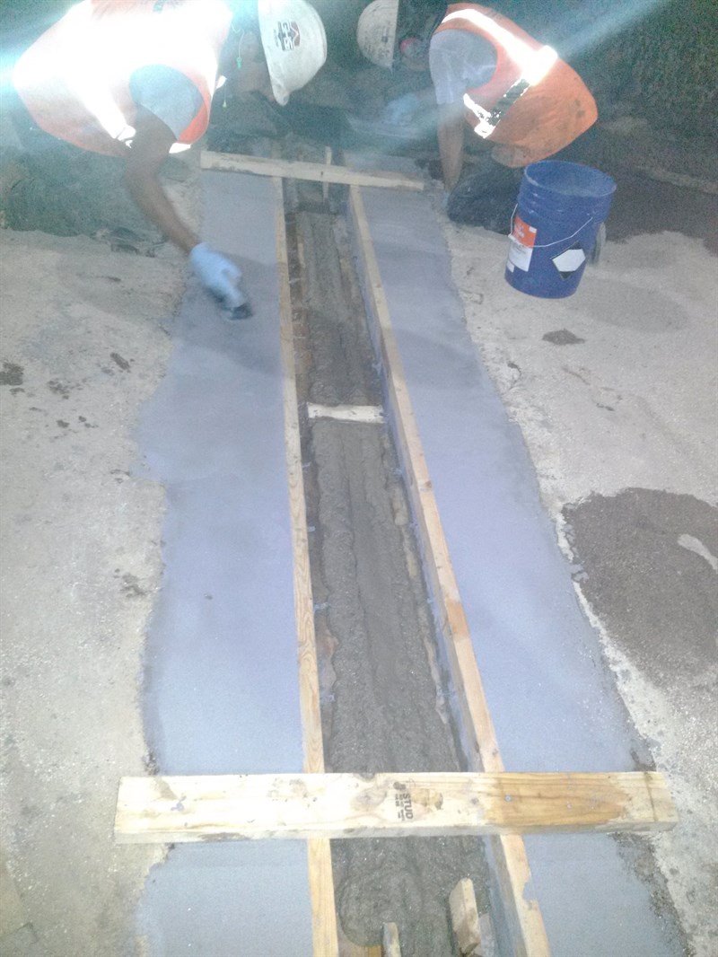 - Edges being prepared while drain is in use