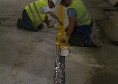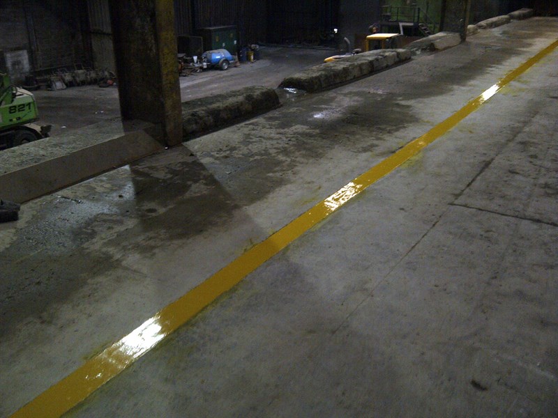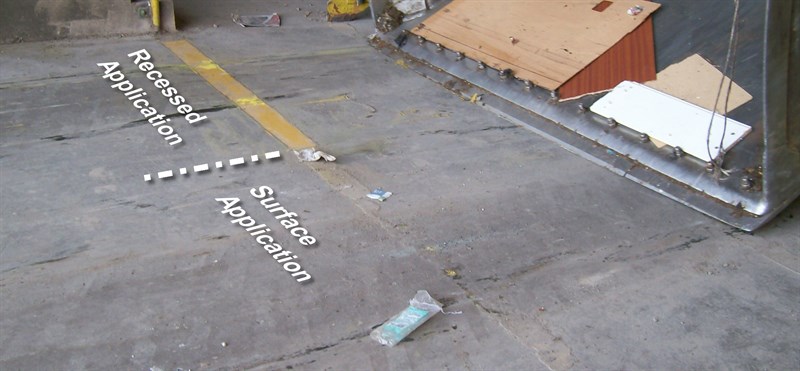 Application was carried out using a modified version of Belzona Know-How System Leaflet FPA-4. A channel was cut into the floor about 160mm wide and 5mm deep. A self-levelling screed was made using Belzona 5231 and Belzona 9221 mixed 3:1 which was poured into the channel.