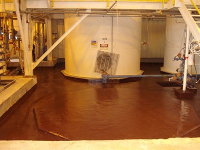 Problem: Previous product used gave limited results. Extensive rebuilding of the concrete was needed to allow the containment area to drain to the center sump. This to be followed by an overall protective coating.