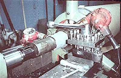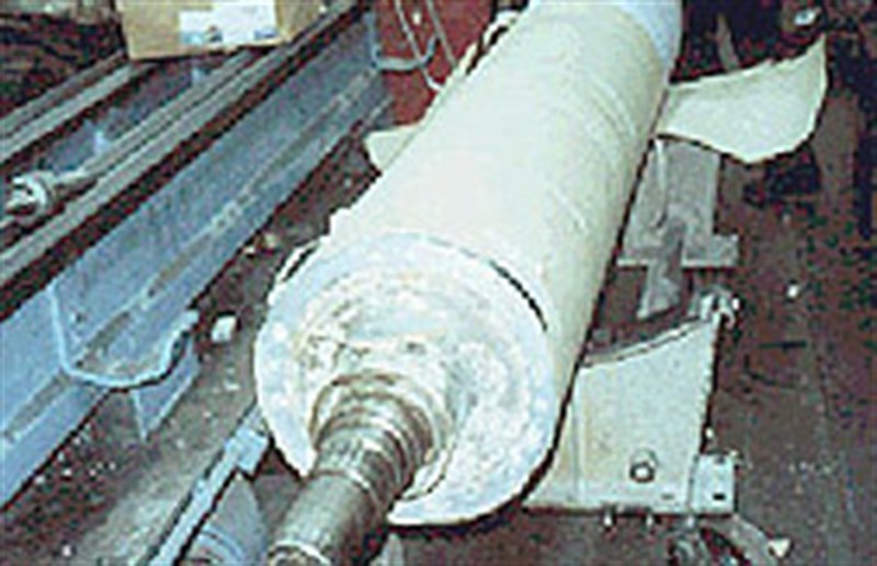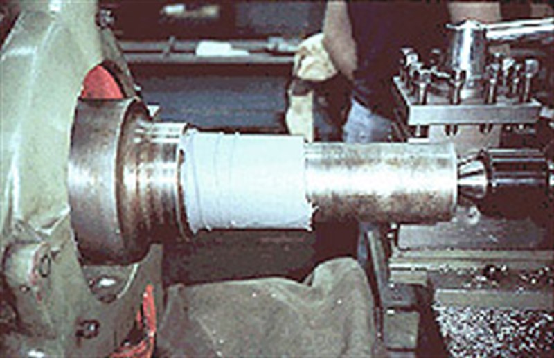 This is a good illustration of proper machining techniques as well as accel-eration of cure using heat guns placed at the appropriate distance from the shaft. The shaft must be cooled down before final machining to maintain tolerances.