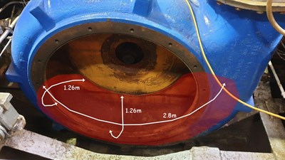 The application was carried out in accordance with Belzona system leaflets CEP-3 and CEP-5. After treating surfaces with SaltAway to remove soluble salts, the areas were grit blasted and degreased. Belzona 1311 was used to fill localised pitting and to rebuild edges. Finally, the belly of the pump was protected with 3mm of Belzona 1814, which was feathered towards the edges.