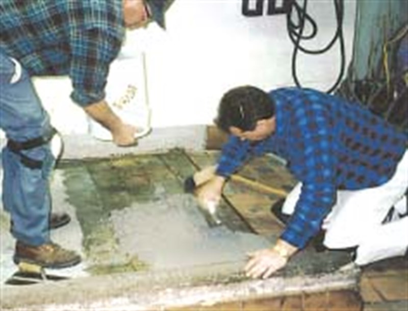 Old concrete was removed and 1 1/2" voids were left in several areas. Belzona® 4131 (Magma Screed) was applied over the areas where the minimum depth was 3/8". The application was carried out in accordance with Belzona Know-How Leaflet FPA-1.