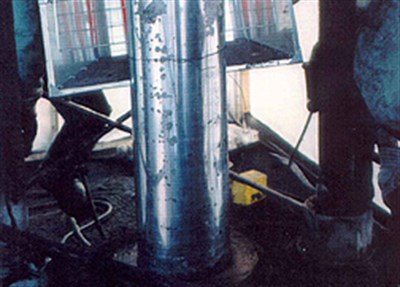Problem: Chrome plating on the rod had been damaged in places which had allowed corrosion to take place. The size and location of the part made preparation difficult and reduced the opportunity for dimensional finishing of the job after application.