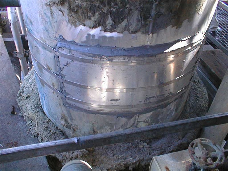 Problem: These tanks were damaged around the connection and the walls through the chemical attack of the contained medium (coke gas in water) and local steam. The temperatures ranged from 50°C to 104°C