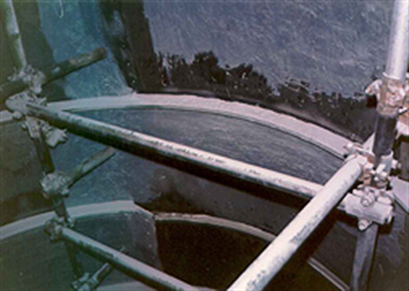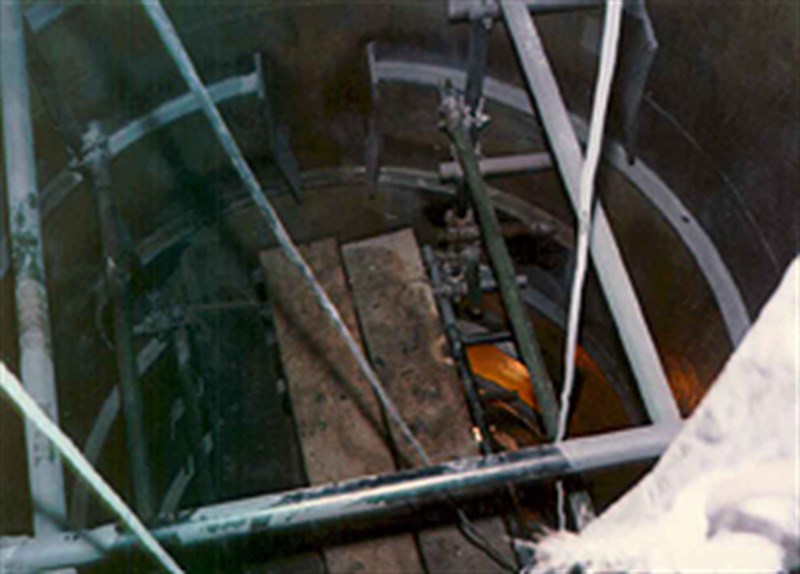 Problem: Erosion of the tower lining by the fluids it contained had previously been repaired by the clients own staff. Surface preparation had not been sufficiently good and the repair had failed by peeling.
