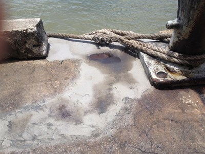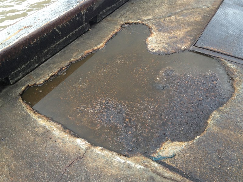 Problem: Abuse from the metal tractor wheels combined with sugar and water causing concrete to be eroded. The dock was becoming unsafe for equipment and pedestrians.