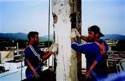 The repair was complicated by the difficulties involved in reaching the deteriorated areas. A system of scaffolding and wooden planks had to be built for this purpose. All workers had to be affixed with security harnesses and lines. There were very strong winds and high temperatures at the top of the tower. The customer's only other option was to demolish the old tower and construct a new one.