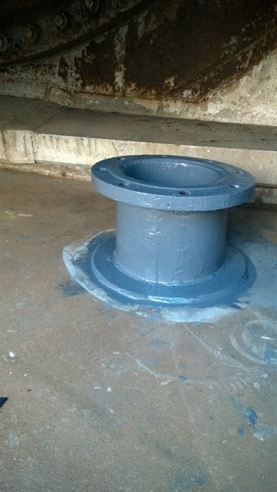 8" Water lines from the condenser to the Power Plant were failing due to corrosion and while the customer was in the process of replacing all interior and exterior 8" lines, the customer discovered the connecting line that went underground into the facility was the root and major source of leaks of the orginal problem. Downtime and cost was a huge issue. There were two flanges that were return lines into the plant. The issue was more extreme than predicted and the customer was concerned about the pipe completely breaking at the base of the concrete or pull apart.