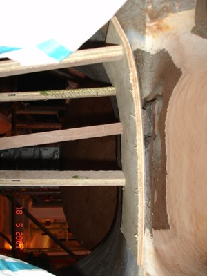 Application was carried out in accordance with modified versions of Belzona Know-How system leaflets CEP-1 & -3. An anchor point was drilled and fixed through the casing. Belzona® 1311 was used to restore the required profile using timber formers to gain required shape. Belzona® 1321 applied to give area erosion corrosion protection.