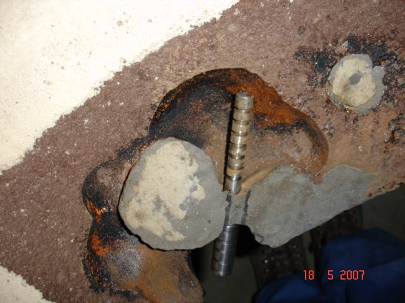 - Damaged area with anchor pin in place