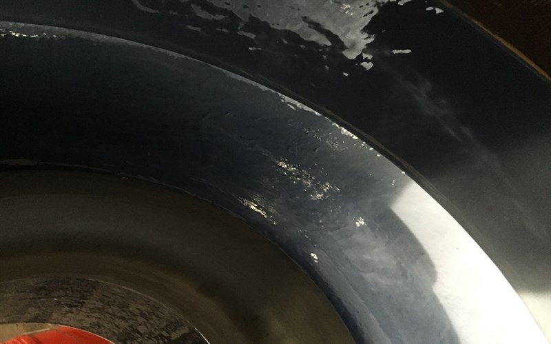 1. Installing Belzona 1121 to fill pits and form smooth uniform surface 2. First coat of Belzona 5821 applied at 10 mils 3. Second coat of Belzona 5821 being applied at 10 mils 4. Two coats of Belzona 5821, total DFT of 20 mils
