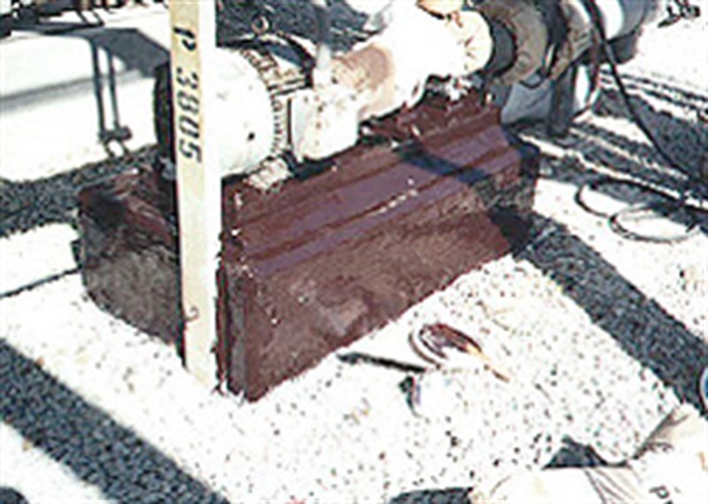 Problem: A pump carrying 98% sulfuric acid was leaking, causing severe deterioration of the concrete base, pump stand and the surrounding containment area.