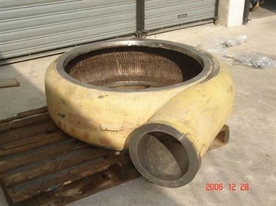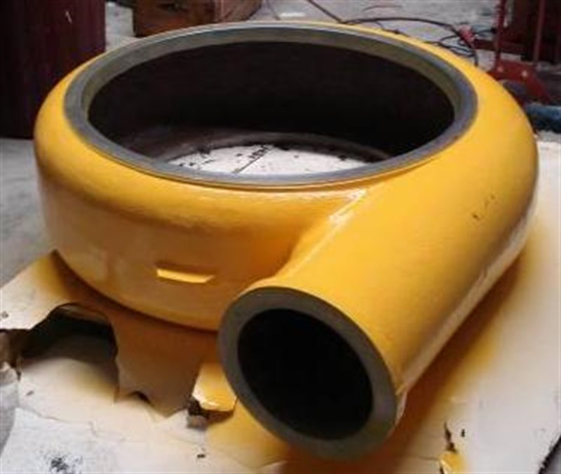 Reconstruction and abrasion-resistant lining of the pump housing of the mud conveyor.