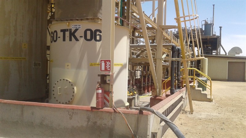 Containment area for Cyanide tanks and pumps.