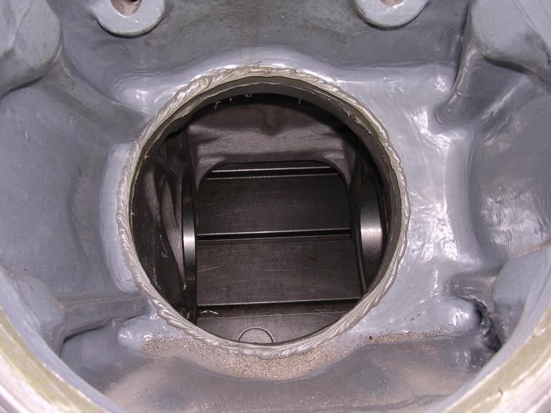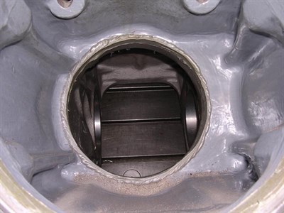 The repair to the sealing faces was carried out in accordance with Belzona Know-How System Leaflet ENC-5, using machining methods. Areas damaged by corrosion and cavitation were rebuilt with Belzona® 1111, and cooling water areas were fully coated with Belzona® 1391 in accordance with Belzona Know-How System Leaflet ENC-6.