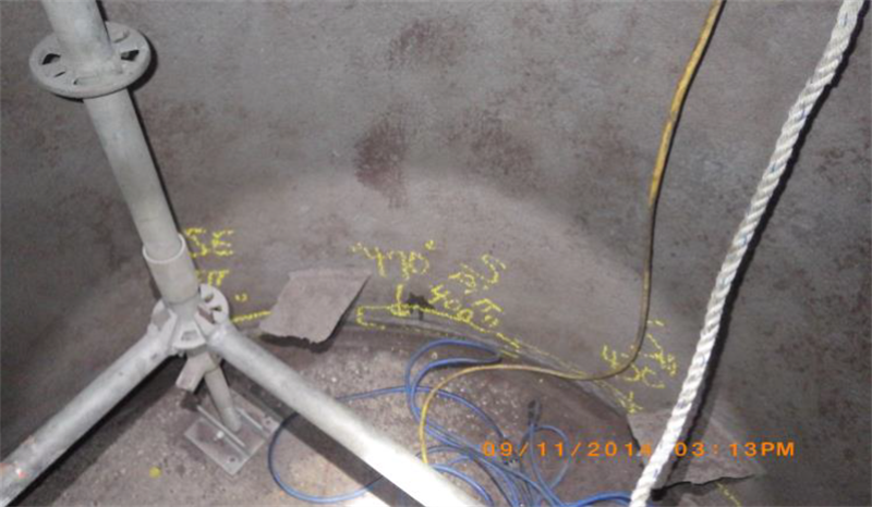 Application was carried out in accordance with a specific Method Statement developed for this project which included Belzona Know-How System Leaflet TCC-3 for repairing/renewing damaged linings. Belzona 1111 was used for pit filling; Belzona 5892 was applied using a brush as a two coat system in accordance with Belzona Instructions For Use.
