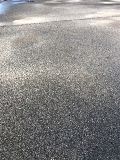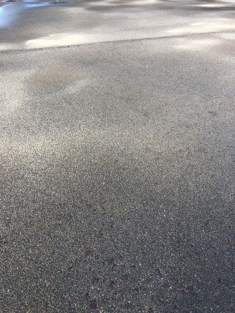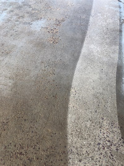 The concrete floor of this gas station was damaged, greasy and slippery.