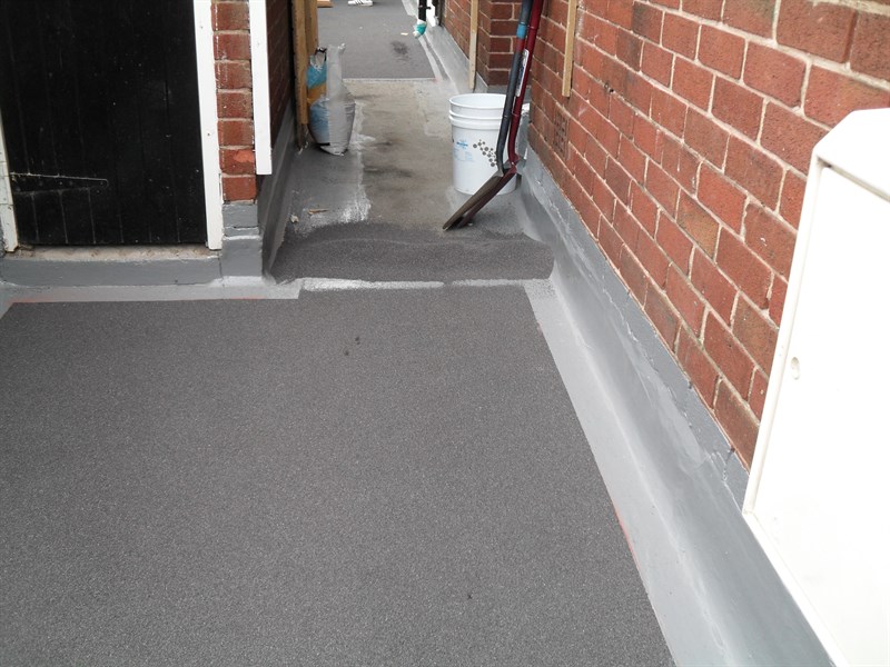 Problem: Over the years the cantilevered balcony had dropped allowing a gap to form between wall and the balcony itself. There was then water ingress through the gap into the shops below.