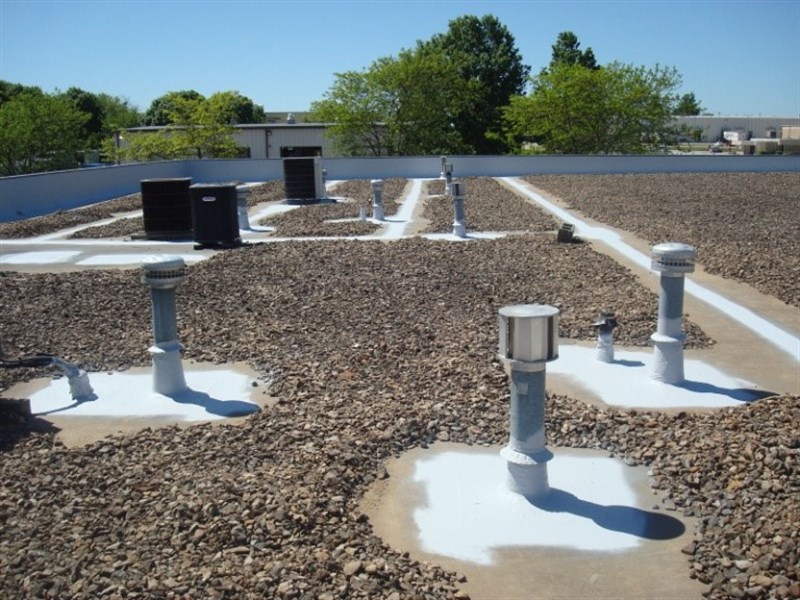 The rock ballast was moved to expose all joints, seams, penetrations, parapets and patches. These known problem areas then received the fully reinforced Belzona 3111 system remediation. The application was carried out in accordance with Belzona Know-How System Leaflet RPA-1.