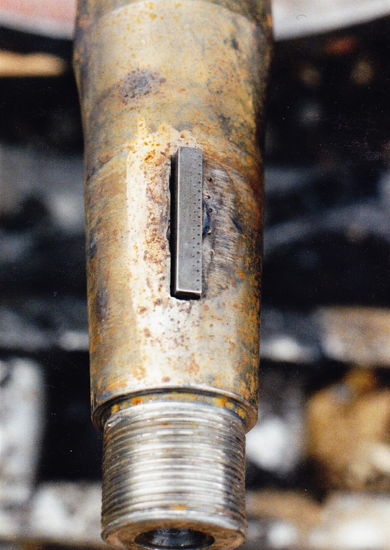 Problem: The tapered final drive shaft keyway was worn oversize and the shaft was worn down.