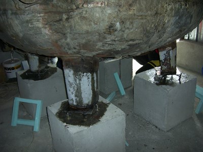 Application was carried out in accordance with the modified version of Belzona Know-How System Leaflet TCC-8. The irregular shim was created by filling the gaps between vessel heels and concrete supports with Belzona® 4111.
