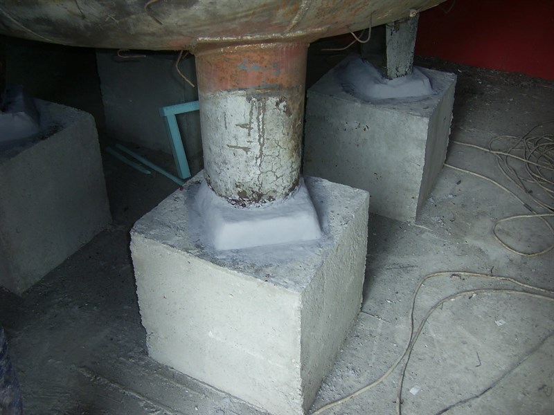 Problem: Uneven gaps (up to 70 mm) and additional deterioration of the concrete supports under mixer heels caused by chemical attack.