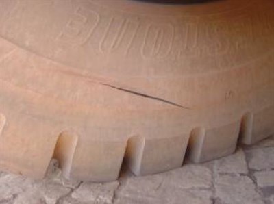 Problem: One of the tires of the dump truck had two lateral cuts, which reached the metal mesh and may have been caused by stone impact during movement. It was necessary to repair the affected area in order to prevent the cut from expanding and the tire to become useless before the end of its useful life. Lateral cuts measured 130 mm and 500 mm in length and 40 and 60 mm in depth.