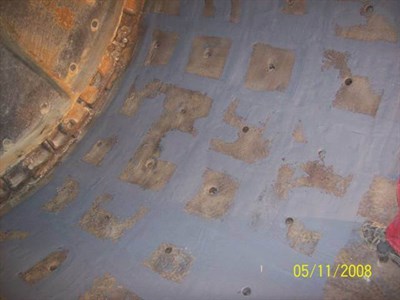 Problem: Due to the nature of the operation, the internal surfaces of the ball mill are subject to constant impact from the falling balls and other media present inside. Shell wall became damaged beneath the wear plates.