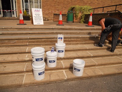 Belzona products were required in order to give a fast, long-lasting and cost-effective repair. The ability to bond to and build up old concrete meant that the steps did not have to be completely removed and rebuilt. Belzona® 4411 was applied to the step nosings to provide a safety grip system and to ensure there was a contrast in colour, in order to meet the current DDA regulations regarding partially sighted people.