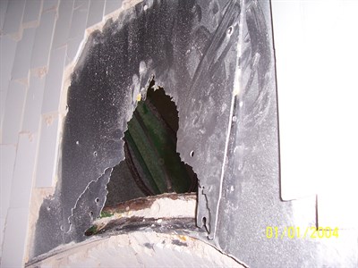 - The hole in the Vacuum system prior to repair