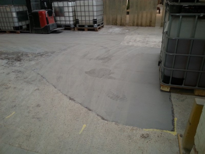 About 28m² of concrete floor in textile plant exposed to regular forklift truck traffic.