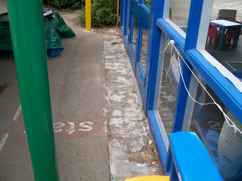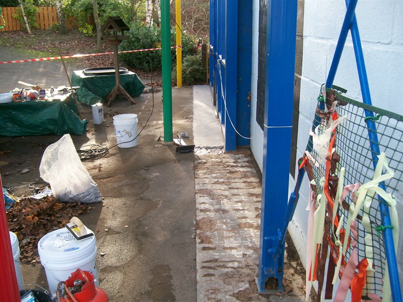 Problem: Some loose and damaged tiles had been removed in the playground bordering a class room. This had left concrete exposed and the area looking unsightly and representing a potential slip/trip issue for young children.