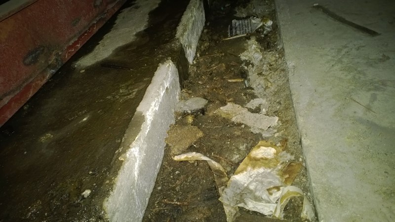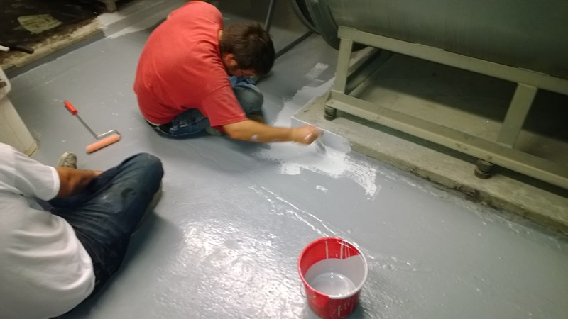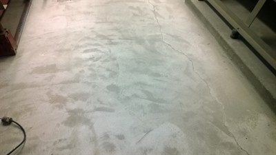 Problem: A sweating air conditioner system dripped water onto a mechanical room floor and eventually found the cracks in the classrooms below. High humidity in summer caused condensation on an AC system, which had been recently upgraded. The system was in an area where a building expansion had occurred and a large trough had never been repaired. Additionally, the old building floor and the new building floor were not levelled or of similar construction materials.