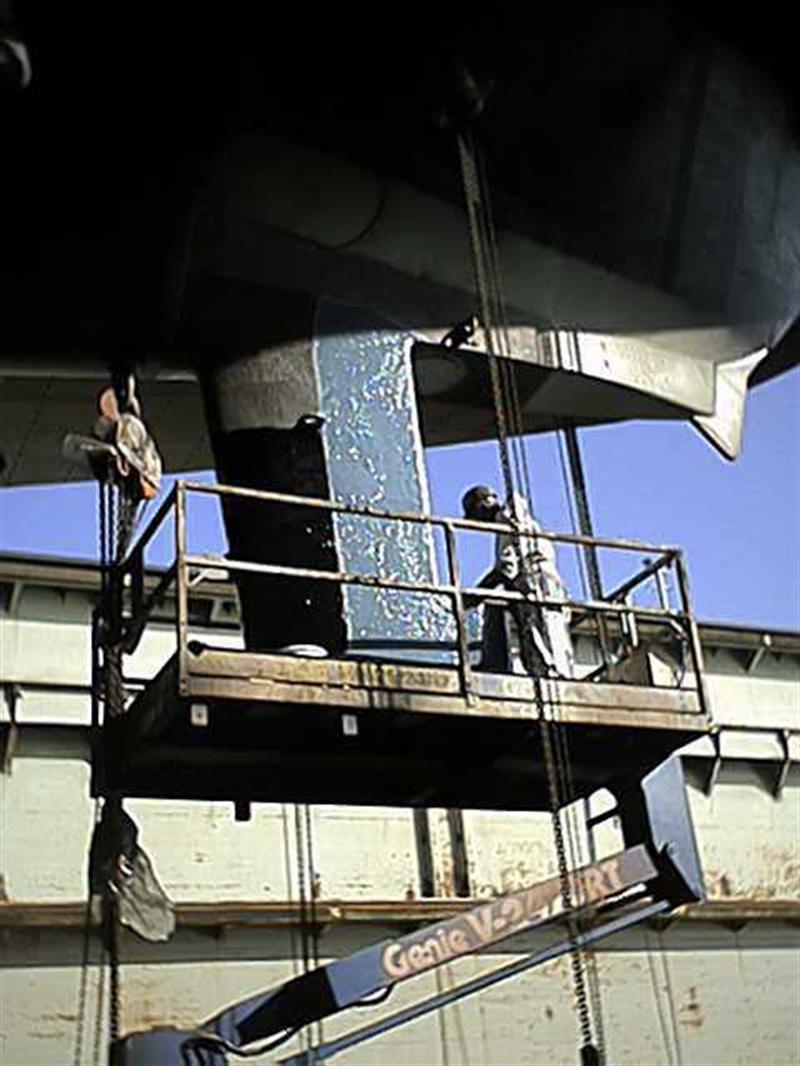 Problem: Bi-metallic corrosion had eroded much of the metal around the pintle mounting area, while the leading edge was subject to severe cavitation attack.