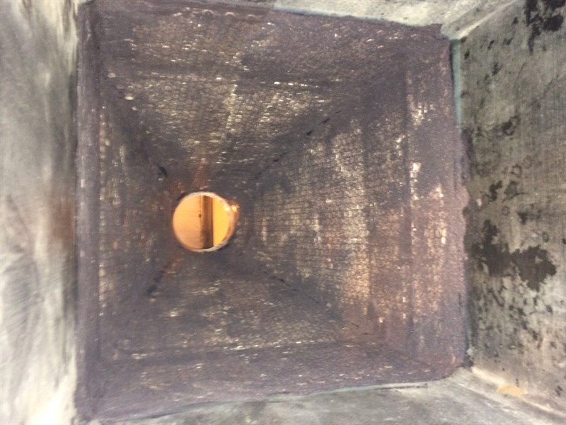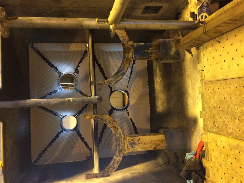 Problem: Lime slurry had worn away the existing rubber liner through the steel, and had created holes and washed out areas towards the bottom of the boxes in the cyclone areas.