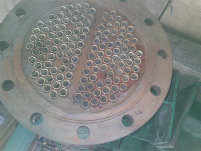 Problem: Severe erosion and galvanic corrosion between copper tubes and steel tube sheet.