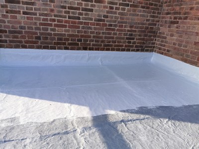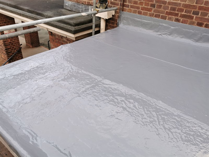 The repair area was pressure washed substrate leaving a clean sound surface. Fungicidal wash was then be scrubbed into the surface and left to dry as per instructions. Localised concrete repairs to the flashings were then completed using Belzona 4141. Two coats of Belzona 3131 incorporating reinforcing sheet were then applied to complete the application. Belzona 9361 reinforcing sheet was used on general roof areas and Belzona 9351 reinforcing sheet on problem areas where exceptional elasticity is required such as the upstands. The application was carried out in accordance with Belzona Know-How System Leaflet RPA-7 and RPA-8.