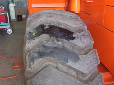 Problem: When the transport unloaded this brand new loader, the tire was damaged.