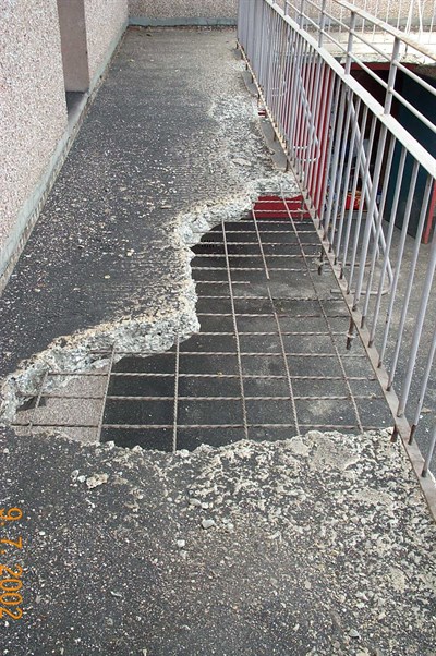 Problem: Regular application of salt had led to deterioration of the concrete beneath the asphalt. When asphalt was removed, a major structural issue was uncovered. The structural engineers at the council gave the approval for the repair.