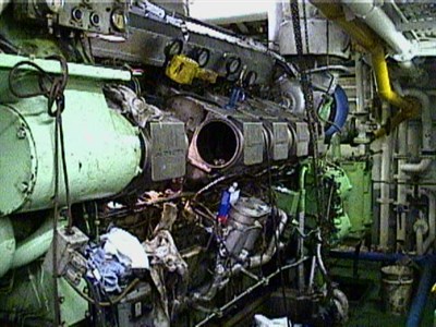 Problem: Damaged generator casing allowing coolant into main sump threatening ships main engine bearings.