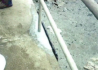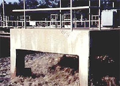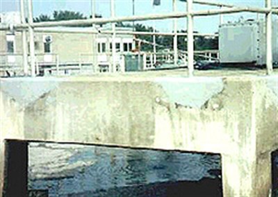 Patching the concrete did not work, since the old and new concrete did not bond well. This allows water to migrate through the repair, causing the same deterioration of the concrete as before. Replacing the slab would cost thousands of dollars as well as the interruption of the aeration tank process.