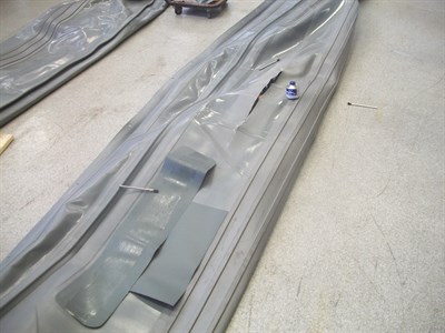 - The outside patch bonded in place and the section of the sponson is shown inflated and holding air.