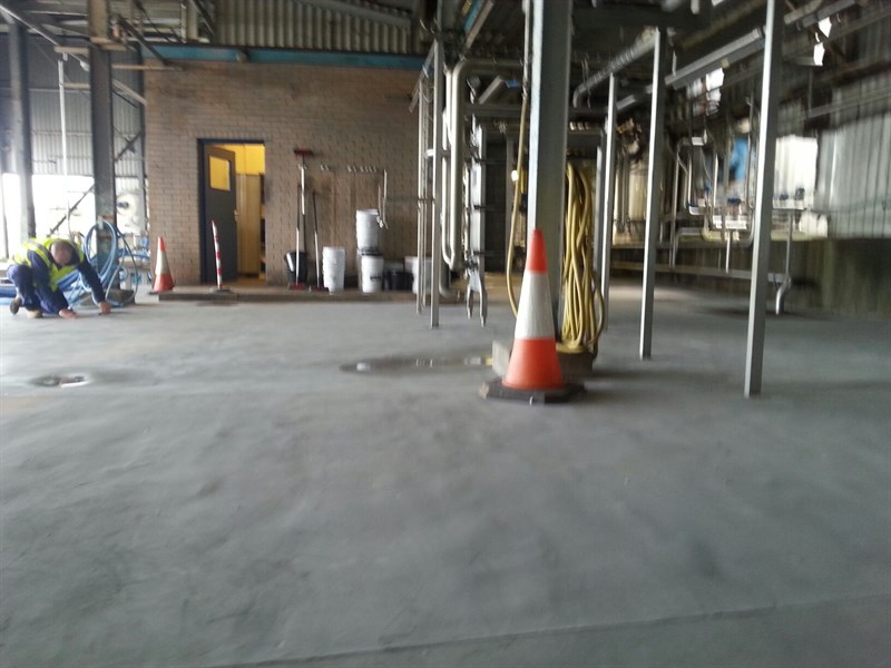 Floor in milk reception area. The plant had a two week shutdown in which to complete repairs.