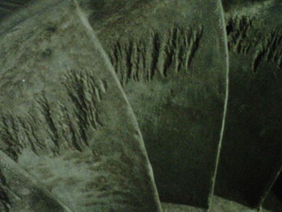 Damaged turbine Close-up of the damage Belzona® 1111 used in combination with a metallic mesh Application completed with Belzona® 1341