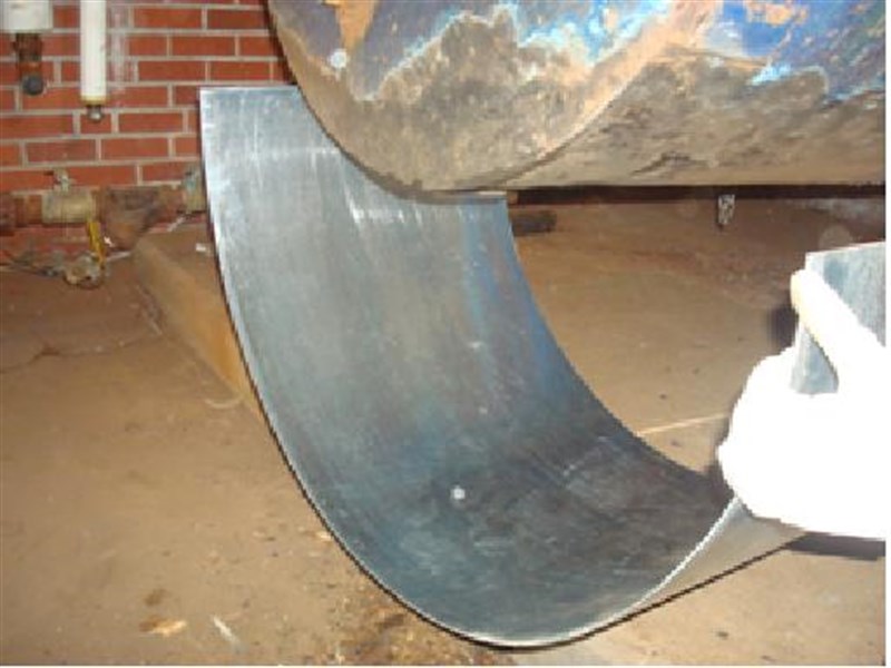 Application was carried out using a modified Belzona Know-How System Leaflet TCC-1. The tank was lifted for access and mechanically prepared with the MBX Bristle Blaster. A heavy gauge steel plate was fabricated and bonded into place with Belzona® 4181. Belzona® 1311 was then used to reinforce the tank ends.