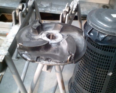 Problem: Whilst casing had little damage, the impeller vanes were very badly damaged and needed rebuilding.