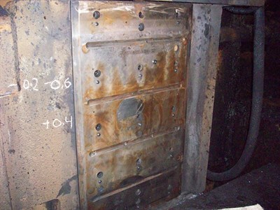 Problem: In the rolling mill housing there were several wear plates which guide the hot steel slabs. Impact and vibration from the heavy metal slabs create damage to the housing behind the wear plates. A significant gap occurred between the support and plates leading to misalignment.